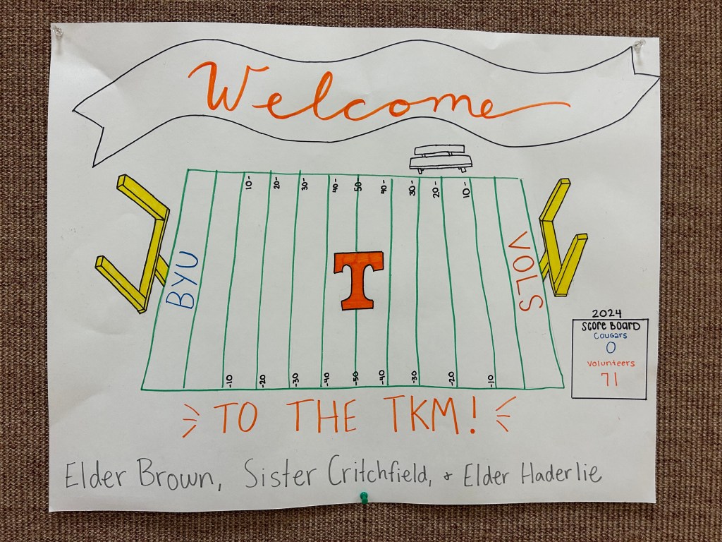 Our departing missionaries made posters welcoming these missionaries to the TKM!