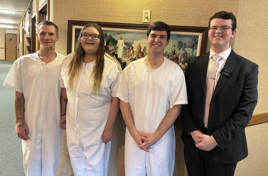 On his way down into the font, Terry felt that he needed to stop for a moment and listen: “I felt the Lord’s presence and I heard Him say that everything was going to be okay, that these people would support me, and that I was forgiven and loved.” Despite being afraid of water, Terry marched on to the font and was baptized and confirmed a member of The Church of Jesus Christ of Latter-day Saints on July 28, 2024. Terry says that after coming up from the water, although a little frazzled, he felt renewed and safe. He also has said he knows he is not alone now that he has the constant companionship of the Holy Ghost.
