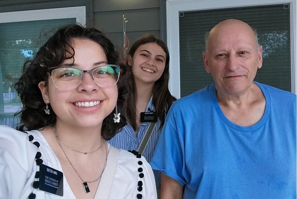 We were trying to find a person previously taught, but they weren’t home. Their neighbor was outside, so we asked if they knew anyone who might need their faith strengthened in Jesus Christ. They said to try the door on the corner, and so we did! Terry opened the door and invited us to sit and talk on his porch.