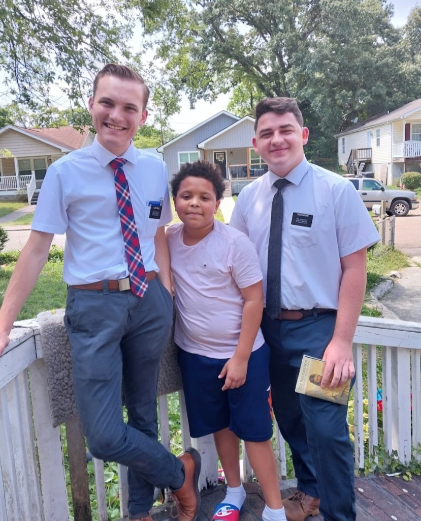 Ashton actually found the missionaries. Elder Tolman and Elder Woodward were walking down his street and Ashton yelled out, “Are yall church people?” He asked if it would be okay if he came to church with them.