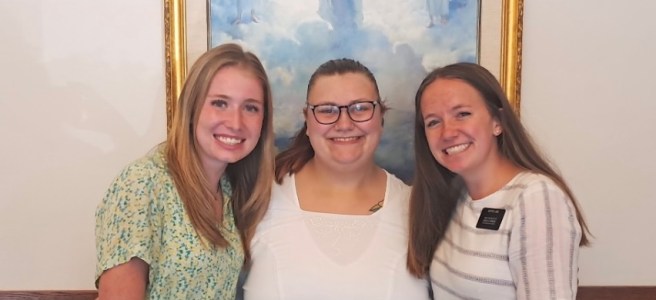On the afternoon of August 10th, Sister Biasi and Sister Hodges were walking out of the library when someone shouted, “Hey Sisters!” Quickly turning to see who called to them, they were met with Riley Cowin, who turned out to be a recent convert from the Crossville Ward. Riley had just moved into the area and had not yet met the missionaries. He went on to introduce himself and explained that he and his girlfriend would be attending church the next day. His girlfriend, Jayme, seemed very excited to come and the Sisters set up a lesson with them right after church.
