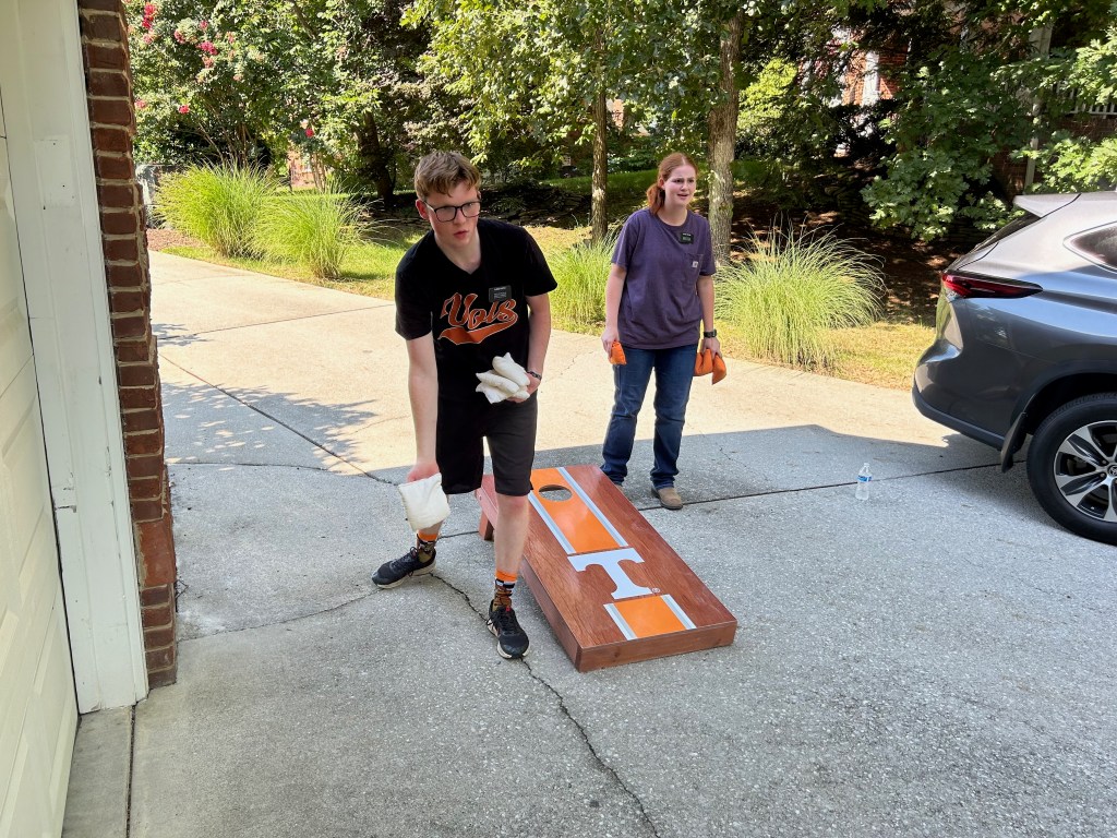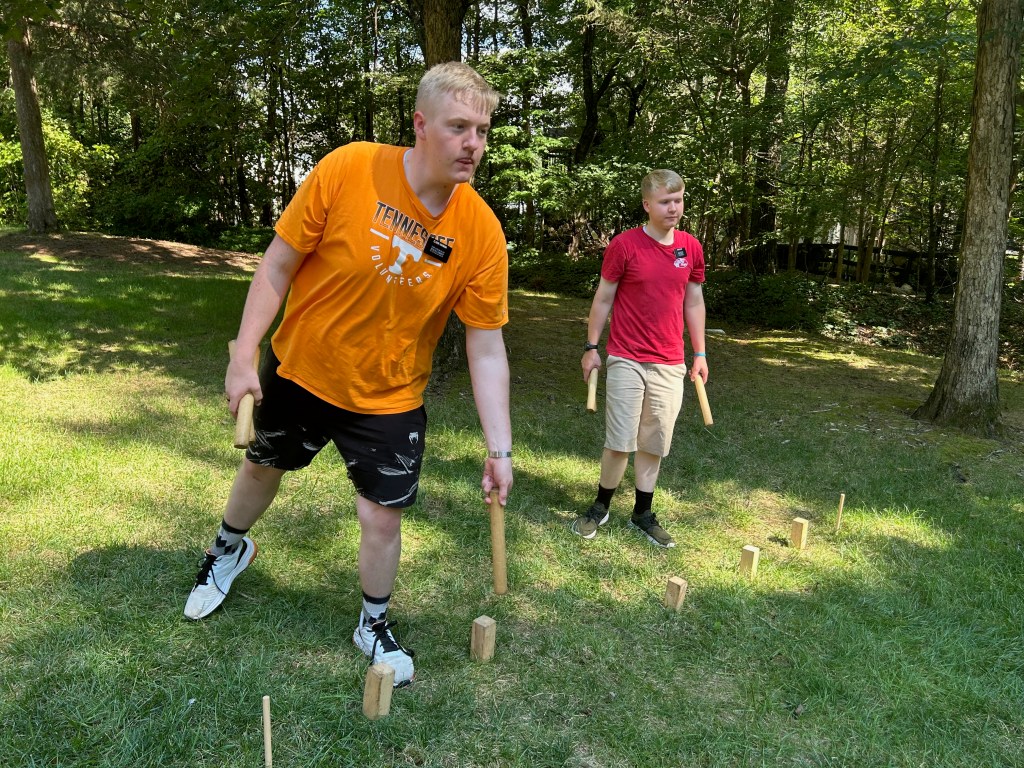 It was a beautiful day and this round of olympics had four events: corn hole, Kub, bocce, and of course, our Welcome Poster Contest.