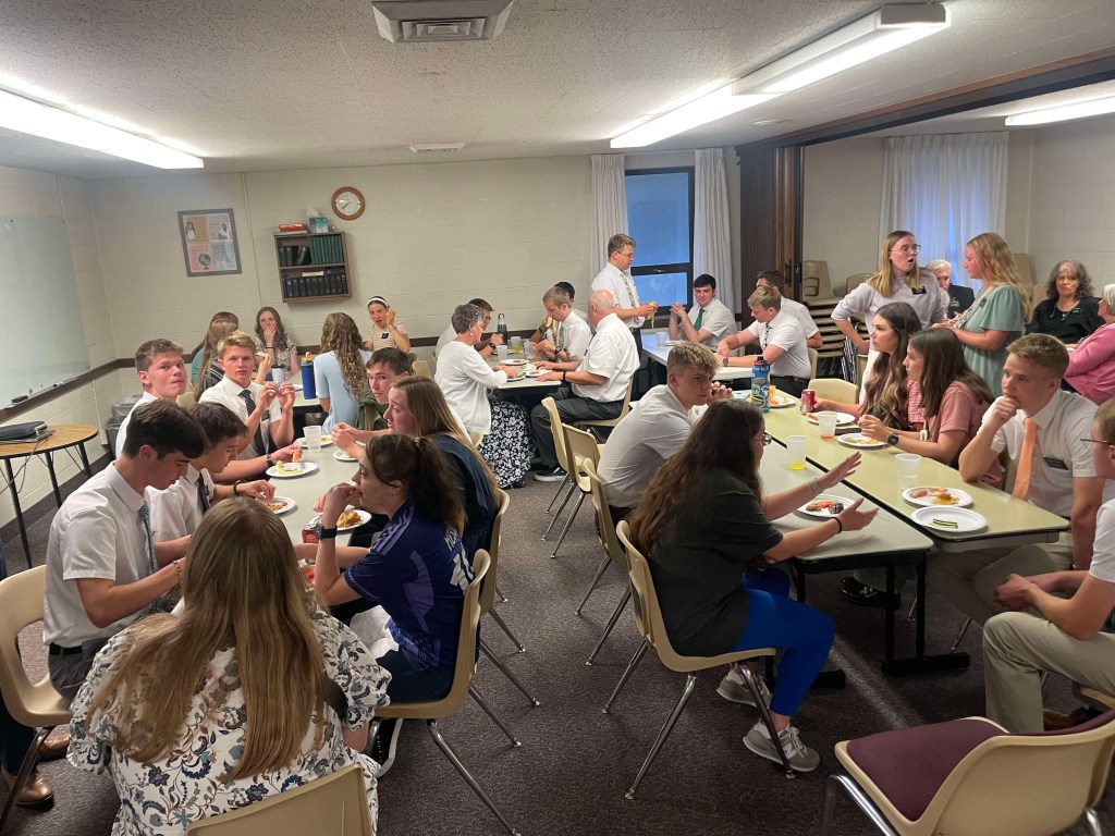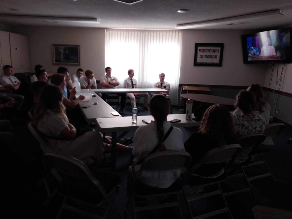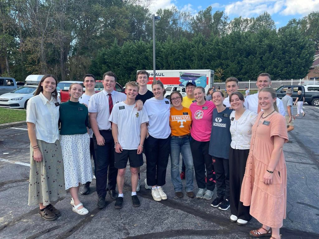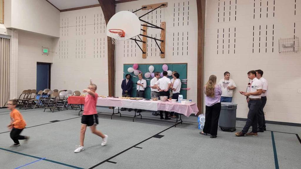 Missionaries across the Tennessee Knoxville Mission gathered together with friends and members to watch President Nelson’s 100th Birthday Party! Each zone held a party. Missionaries gathered at 6pm to watch the broadcast and had a potluck, cake, and ice cream afterwards.