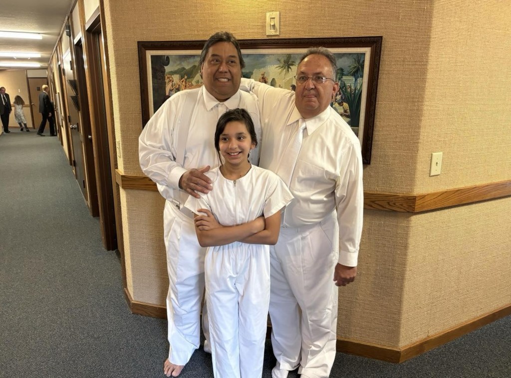 Mia was baptized by her grandfather on April 21, 2024. Now every first Sunday of the month during Fast and Testimony Meeting, Brother Cruz Sr brings his two granddaughters up to the pulpit with him to all bear their testimony of the restored gospel of Jesus Christ.